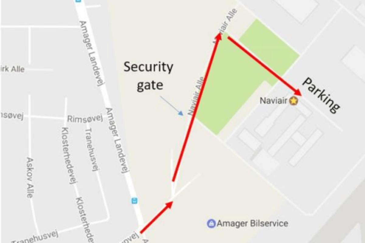 We are located in Naviair’s facilities at the address above. Please make sure to go all the way to the end of Amager Landevej, where you can enter via Tømmerup Stationsvej. Here you will find a gate, marked on the map to the right. Ring the bell, introduce yourself, and say that you have an appointment with Jacob Lentz from Entry Point North. The guard is expecting you and will open the gate for you.